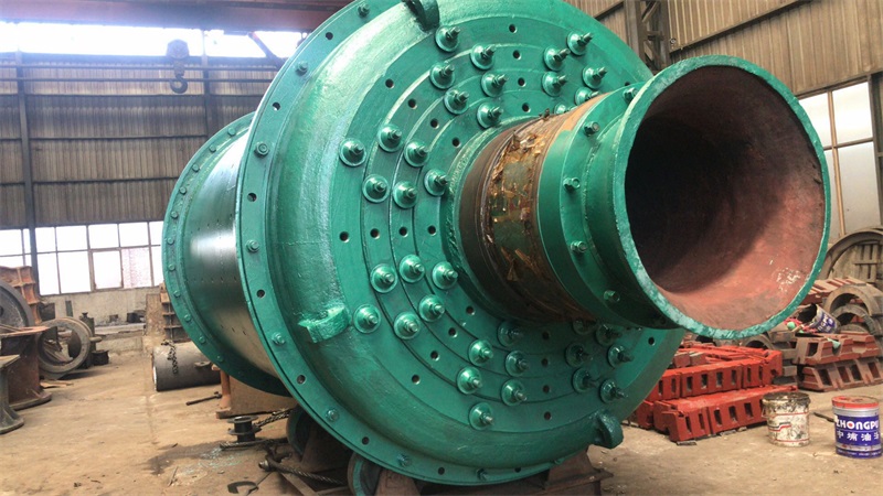 溢流型球磨機筒體用厚度15-36mm的鋼板焊接而成,在筒體的兩端焊有鑄鋼制造的法蘭盤,用螺栓將端蓋2和3與法蘭盤連接在一起,二者須精密加工和配合,因為承載磨礦機質量的中空軸頸焊在端蓋上。在筒體上開有1-2個人孔,供檢修和更換襯板用。筒體和端蓋內部敷設有襯板5。端蓋上的中空軸頸支承在主軸承4上。主軸承常用的是滑動軸承,其直徑很大,但長度很短。軸瓦用巴氏合金澆鑄,與一般滑動軸承不同之處在于僅僅下半部有軸瓦。整個軸承除軸瓦用巴氏金澆鑄外,其余用鑄鐵制成。由于球磨機的跨度和載荷很大,將發生一定程度的撓曲,而且制造和裝配的誤差也難以保證準確的同心度,因此主軸承制成自動調心滑動軸承,為防止軸瓦轉位過大而從軸承座中滑出,在軸承座與軸瓦的球面***放一圓柱銷釘。